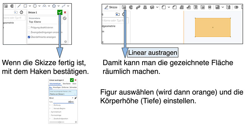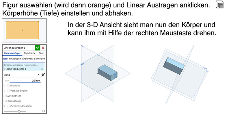 Grundfläche zum dreidimensionalen Körper umformen
