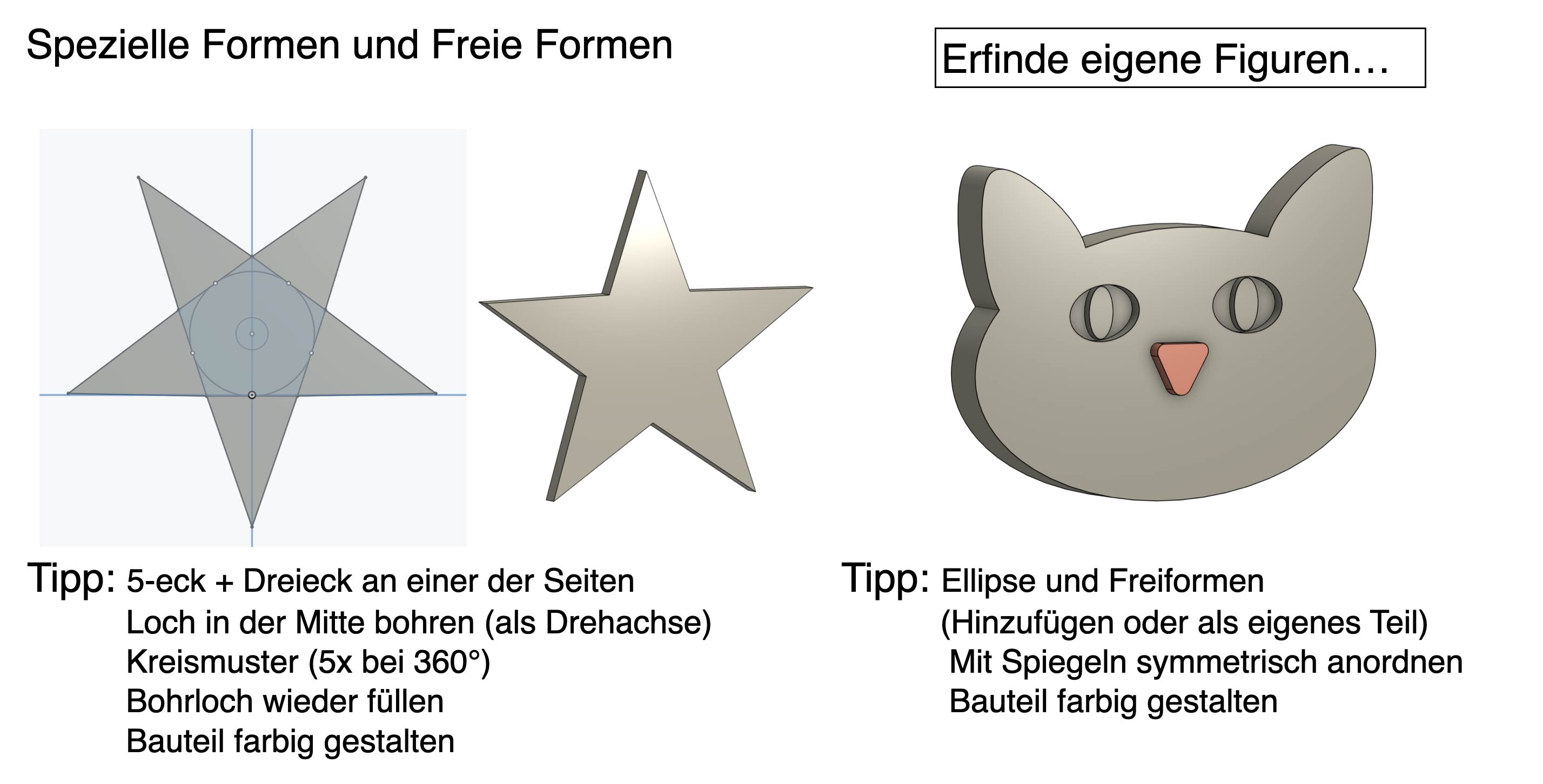 Erstelle mit Onshape eigene Formen und Figuren. Hier ein paar Anregungen...